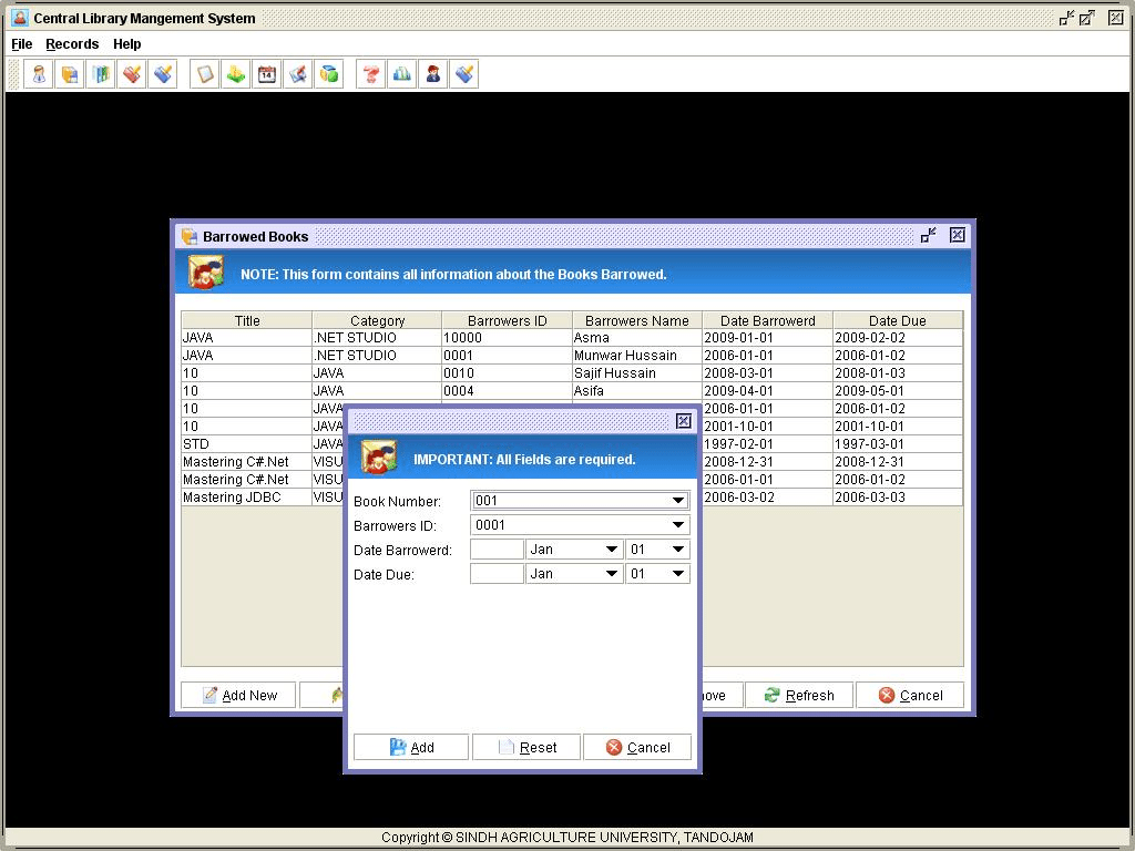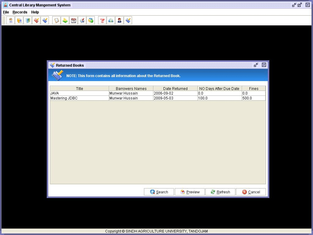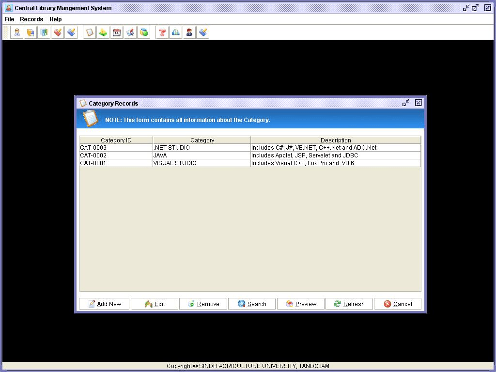 The Central Library Management System project is built using JAVA technologies and the Microsoft Access Database used to store documents. The goal of the research work is to build a framework for issuing BOOKS to students, teachers, leveraging the current Campus Network infrastructure And using Advance Technologies, and making the library system more effective and efficient. Add books, question books, return books, Fine calculations, Annual reports are the key features of this initiative.
